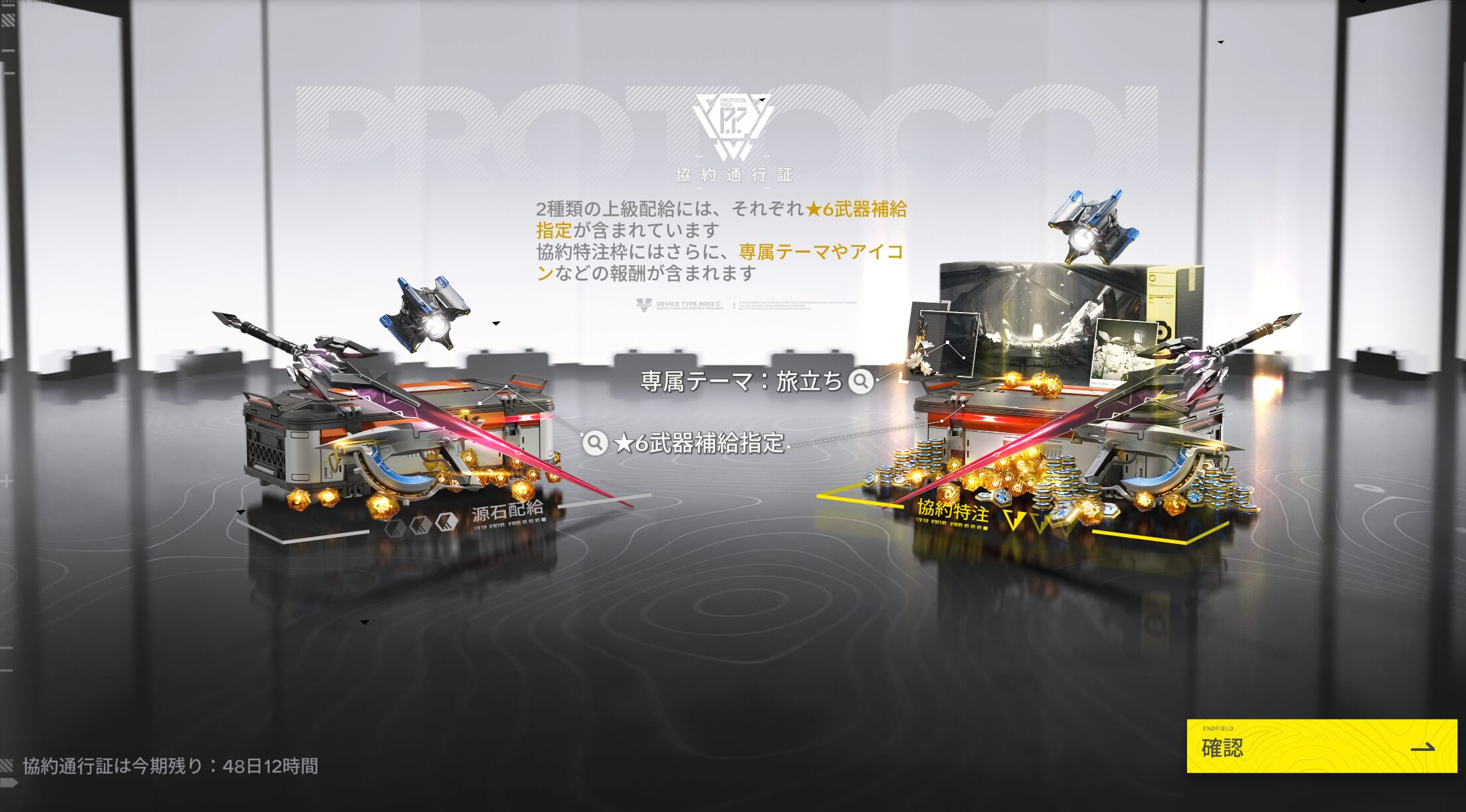 そこへ、協約通行証のレベル40でゲットできる★6武器指定箱で、軸になるオペレーターと相性の良い武器をゲットできればいい感じです。