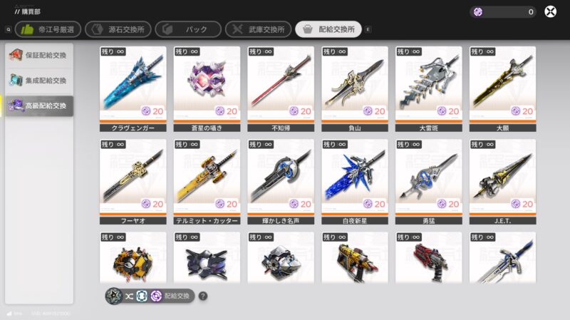 配給交換所では、ガチャを回して獲得した専用トークンを利用してアイテムを獲得できます。