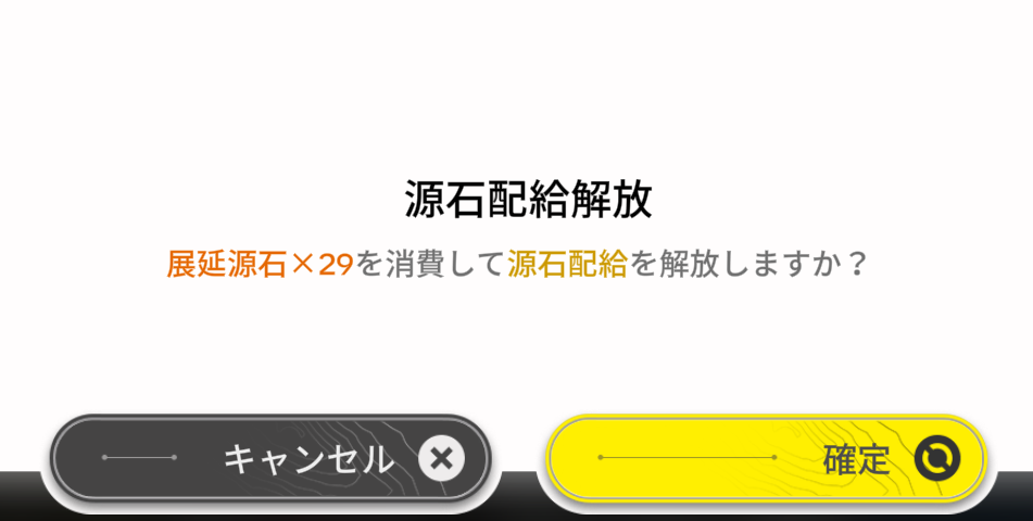 このタイミングで、課金石を使って『源石配給』の解放を促すメッセージが出てきます。