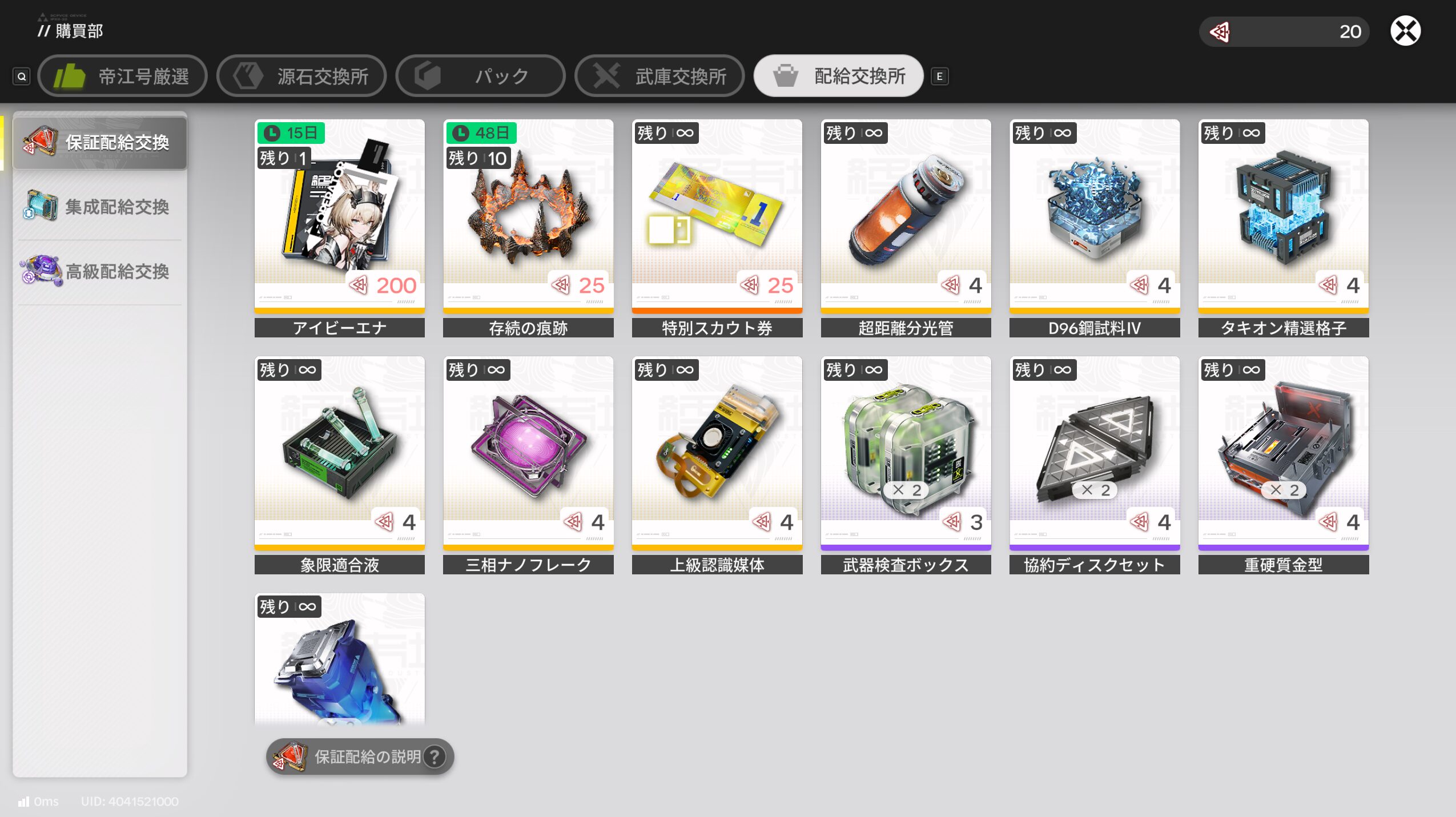 ★5オペレーターの『印』を『集成配給』×20個に交換できます。