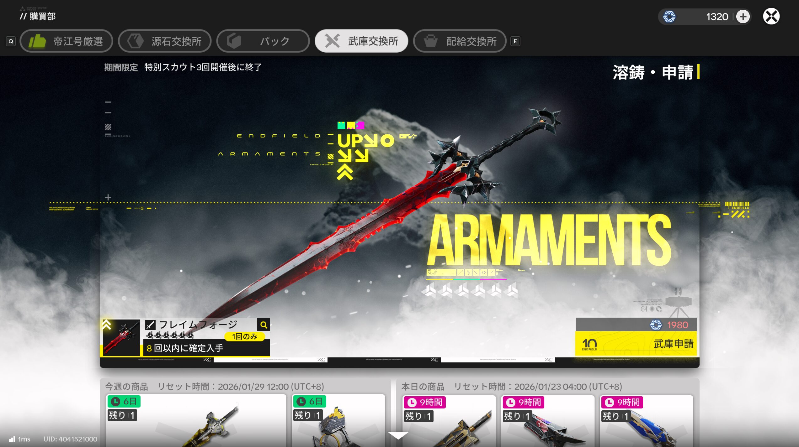 ・可能な範囲で回したガチャでゲットした★6オペレーターのうち、メインアタッカー候補と相性の良い★6武器を選んでゲットする。