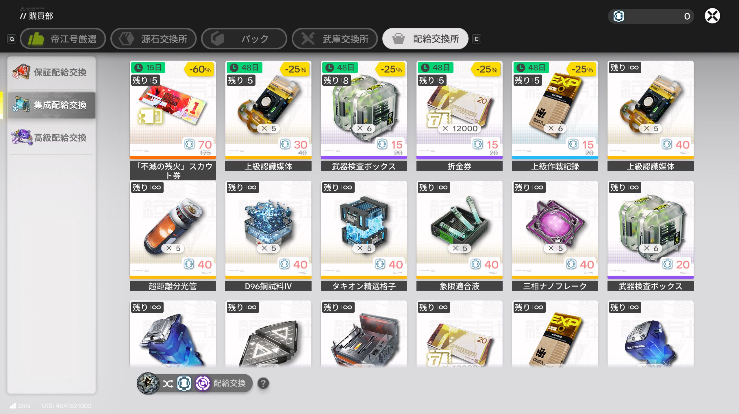 集成配給の一覧から、交換予定のアイテムをチェックしておくと良いと思います。