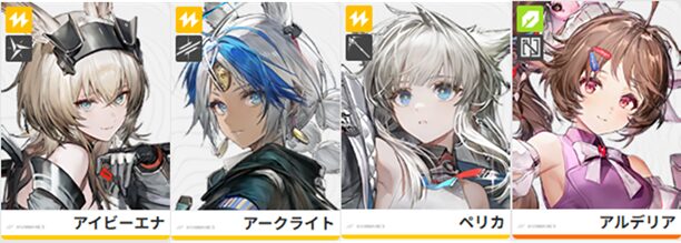 ペリカ:連携技の起点役、電磁付着や感電によるアーツデバフ、敵のスキルカット