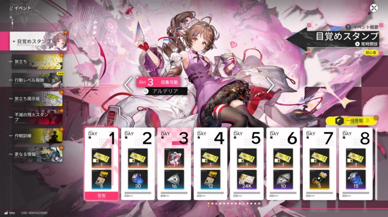 ★6のアルデリアは初心者ログインボーナスの3日目のログインで無料配布されます。