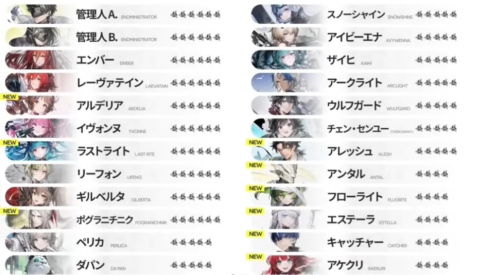2026年1月22日のサービス開始時点では、管理人を入れて23名のオペレーターが実装されていますので、色々な組み合わせでバトルが楽しめそうですね。