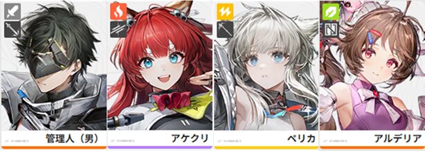 管理人、アケクリ、ペリカ、アルデリアの4人です。
