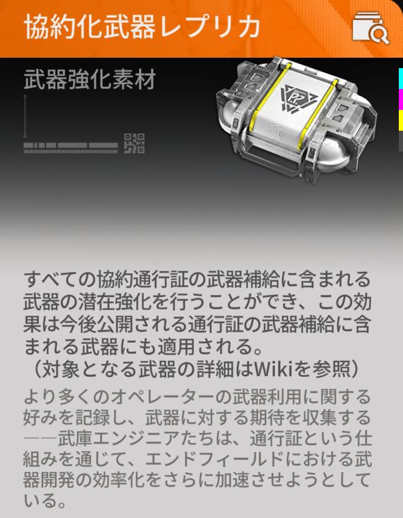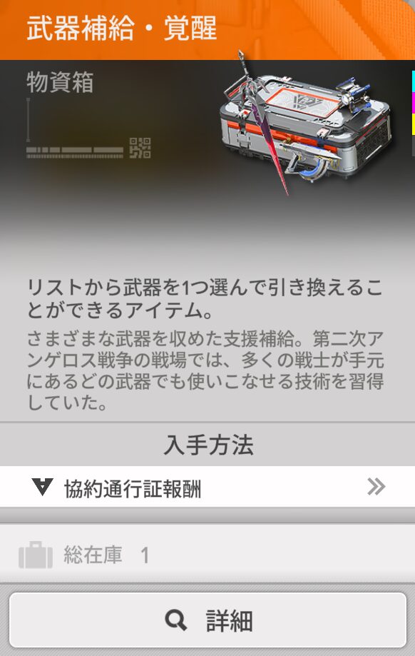 このアイテムを使うと、今回ご紹介する3種類の武器+今後協約通行証から提供される武器も含めて『武器の凸』ができます。