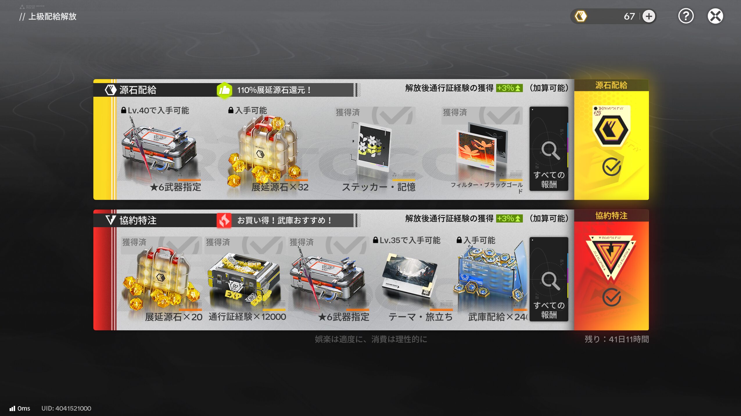 エンドフィールドでは、微課金要素のシーズンパスとして『協約通行証』があります。