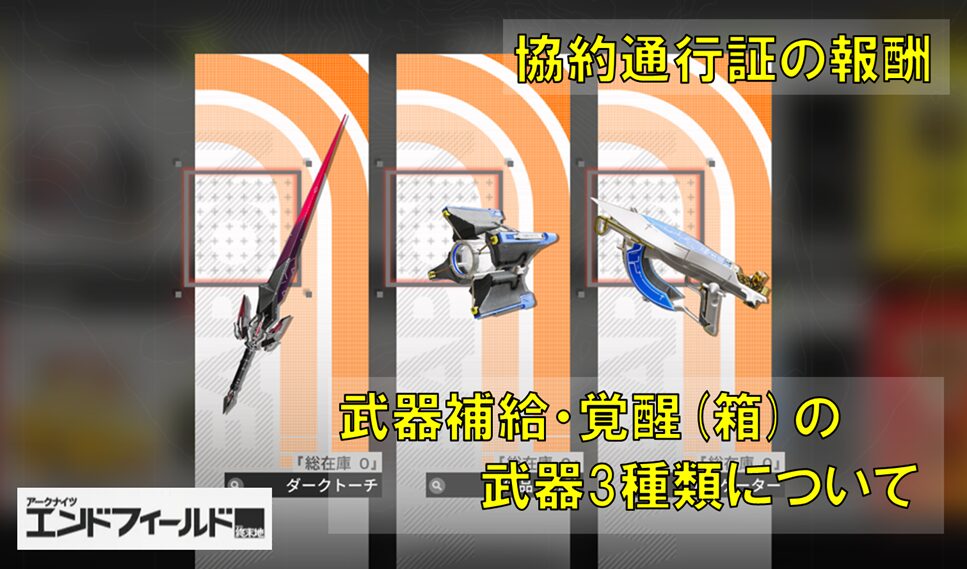 今回は協約通行証の目玉商品(?)である『武器補給・覚醒』の武器3種類についてお届けしました。