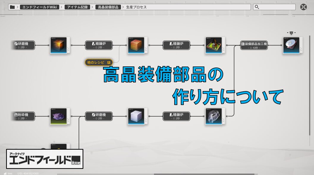 高密度源石粉末:1コ➔製錬炉(2秒)➔高密度結晶粉末:1コ➔製錬炉(2秒)➔特製結晶:1コ