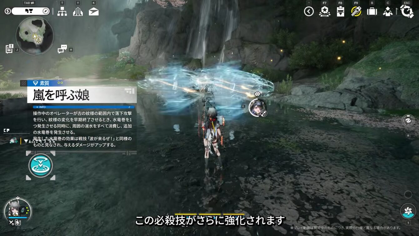 操作中のオペレーターが古の紋様の範囲内で落下攻撃を行い、紋様の変化を早期終了させるとき、水竜巻を1つ発生させると同時に、周囲の湍水をすべて消費し、追加の水竜巻を発生させる。