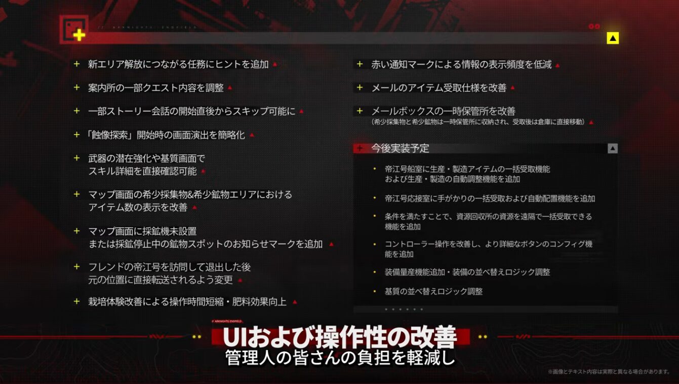 でも、概ねちょっとイラっときていたところを、スムーズにゲーム進行できるよう調整するよ!という項目が多い印象です。