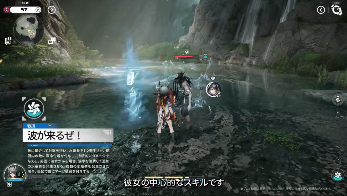 発生した水竜巻の効果は戦技「波が来るぜ!」と同様のものと見なされ、与えるダメージがアップする。