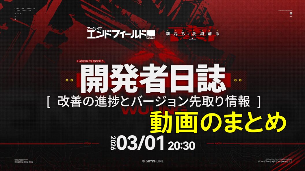 この記事では、2026年3月1日に配信された動画『開発者日誌:改善の進捗とバージョン先取り情報』をまとめています。※本編は約40分ほど。