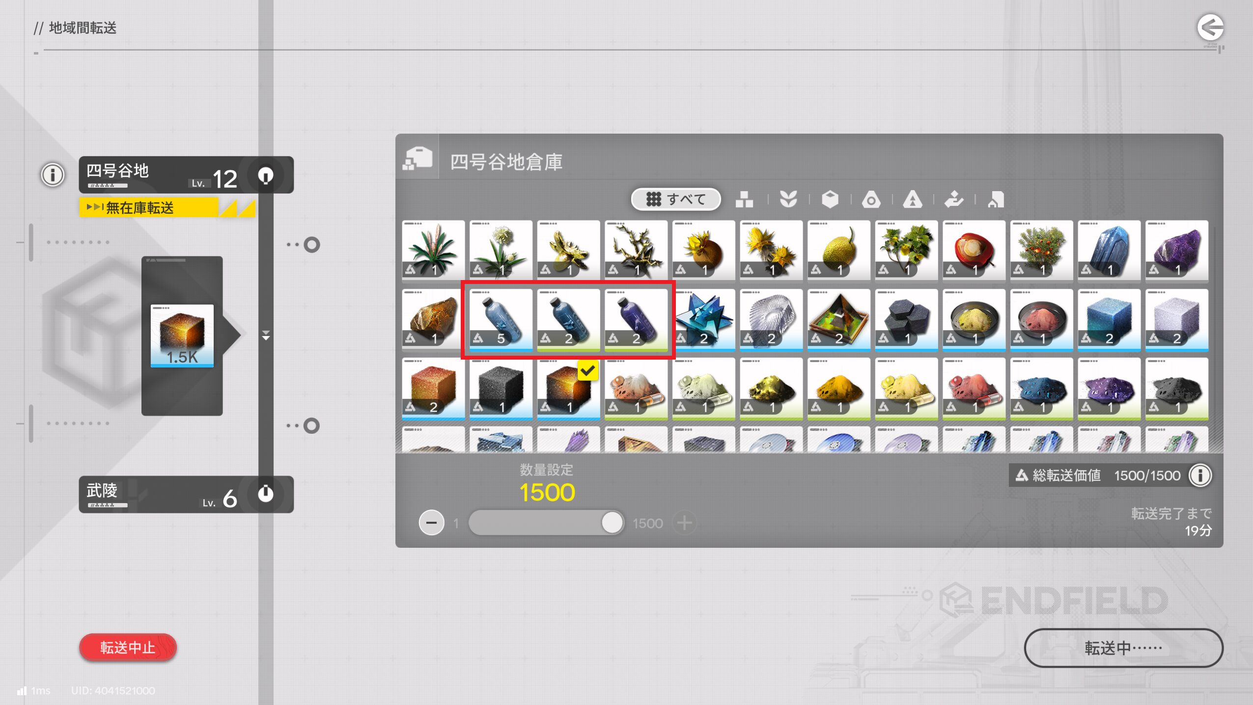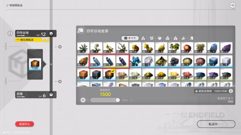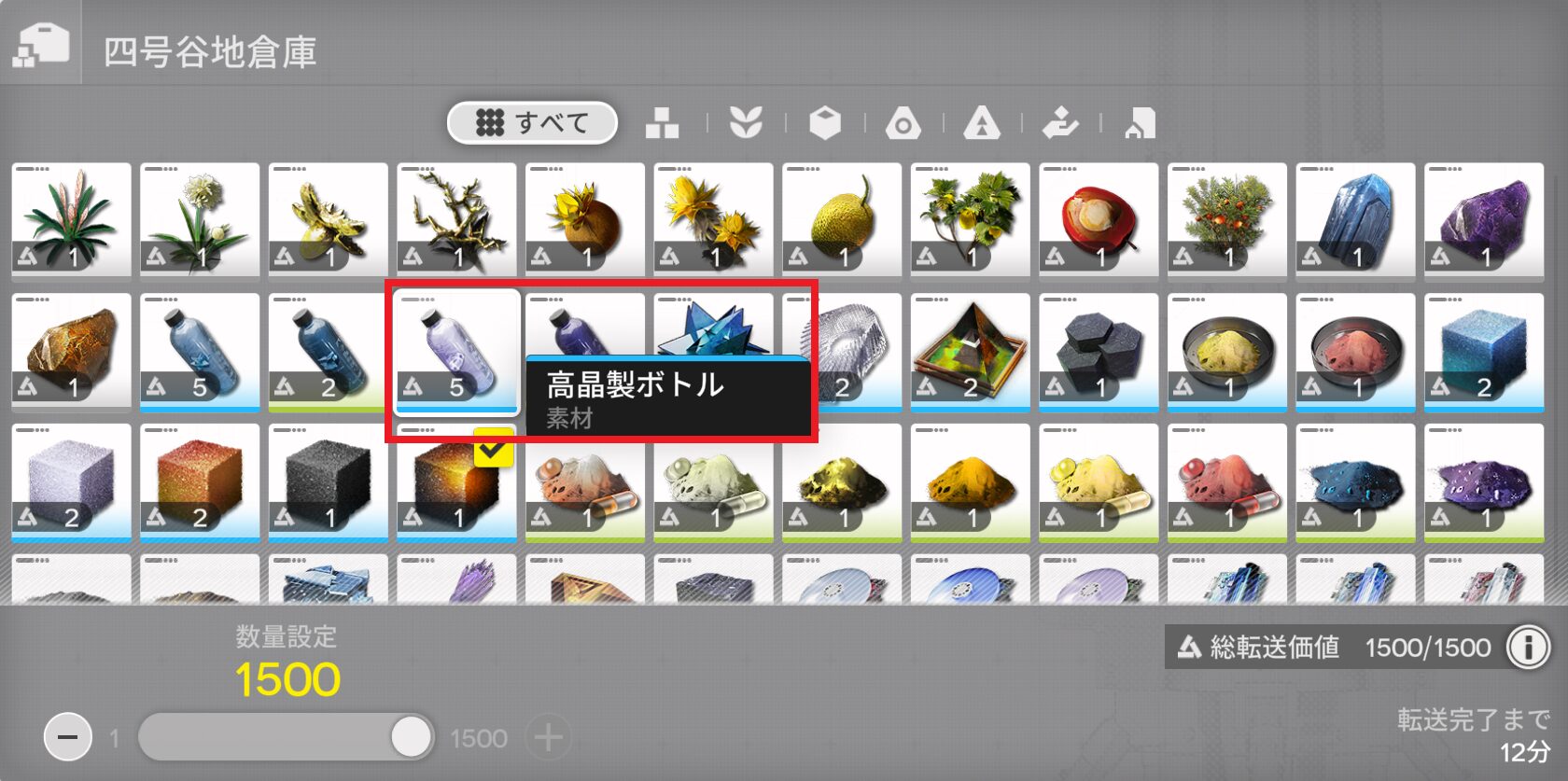 四号谷地から武陵へ『高晶製ボトル』でも転送しようと一覧を開きました。