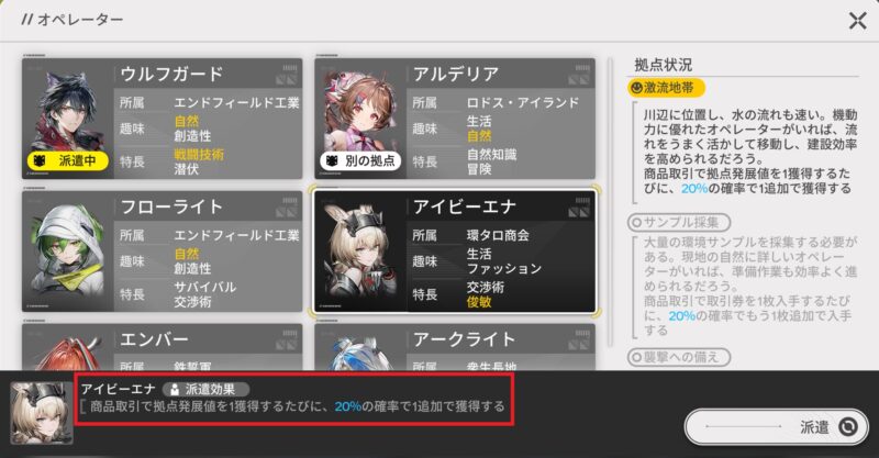 拠点レベルが上がって落ち着いたら、もらえるお金が増えるオペレーターに戻してあげてください。