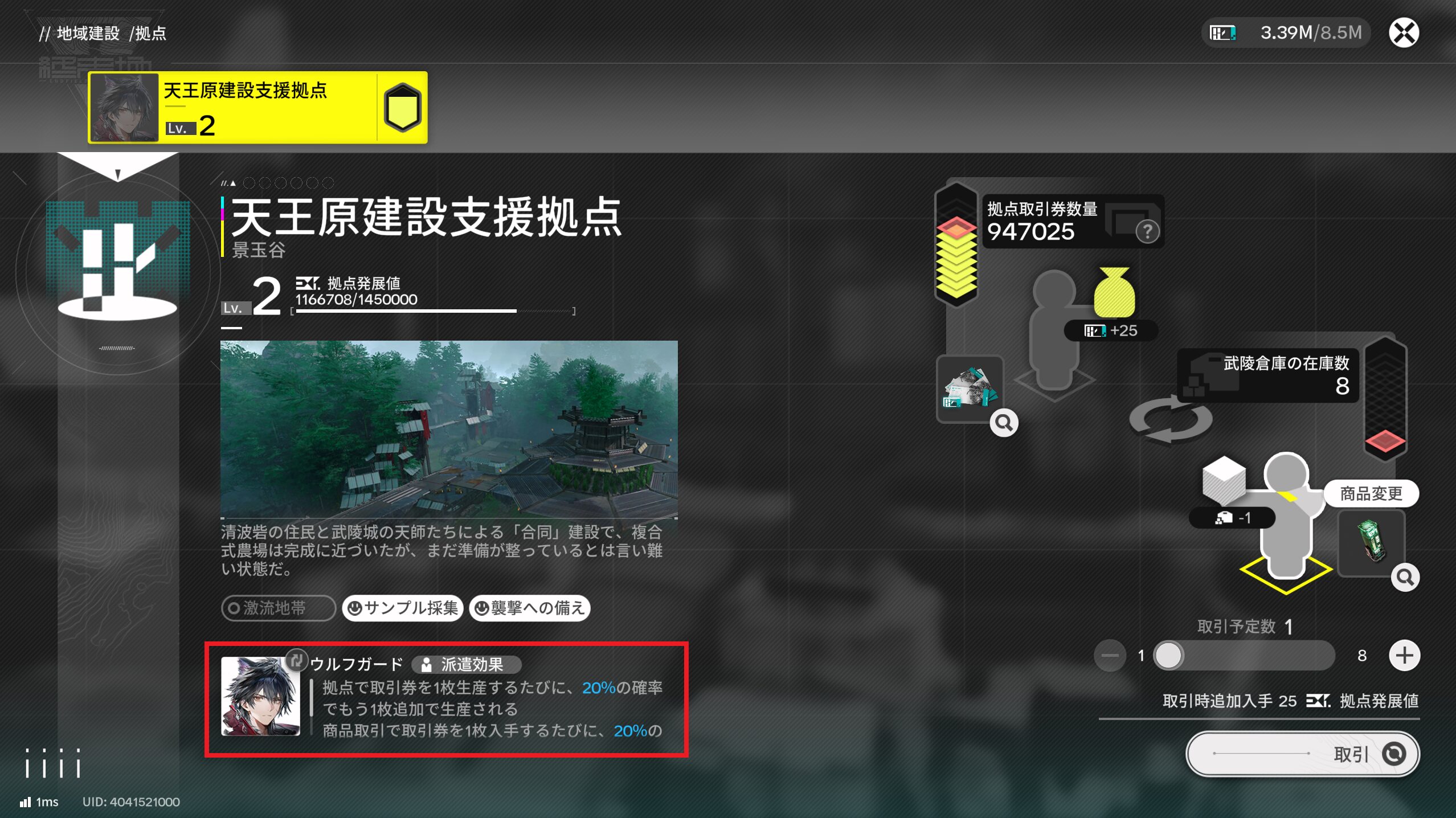 ただ、拠点発展値を上げるには多量のアイテムを販売する必要があるので一苦労です。