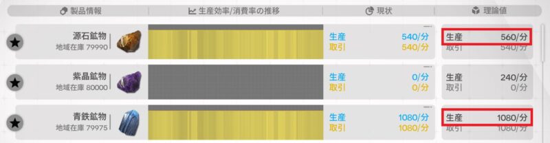 生産設備を調整して、同じか理論値の生産が上回るようにしましょう。