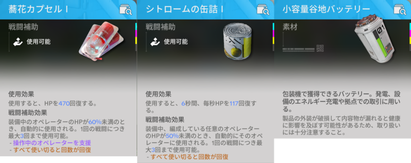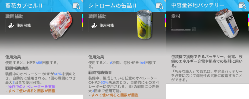 蕎花カプセルⅢやシトロームの缶詰Ⅲについては以下の記事をご参照ください。