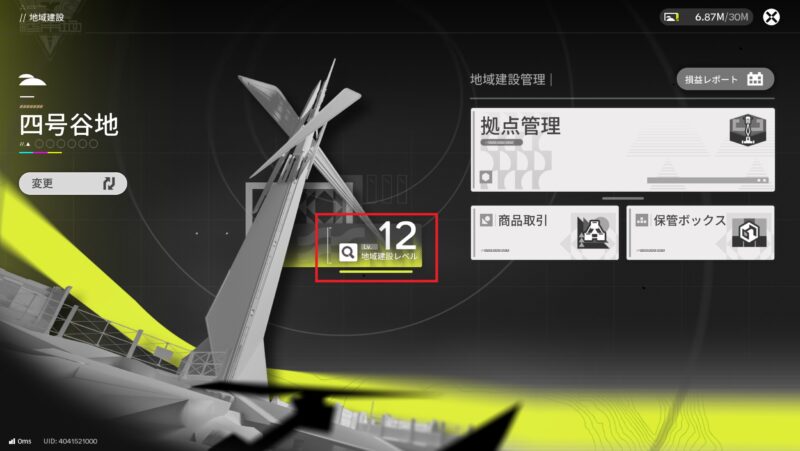 この拠点発展値が一定値まで来るとレベルが上がります。
