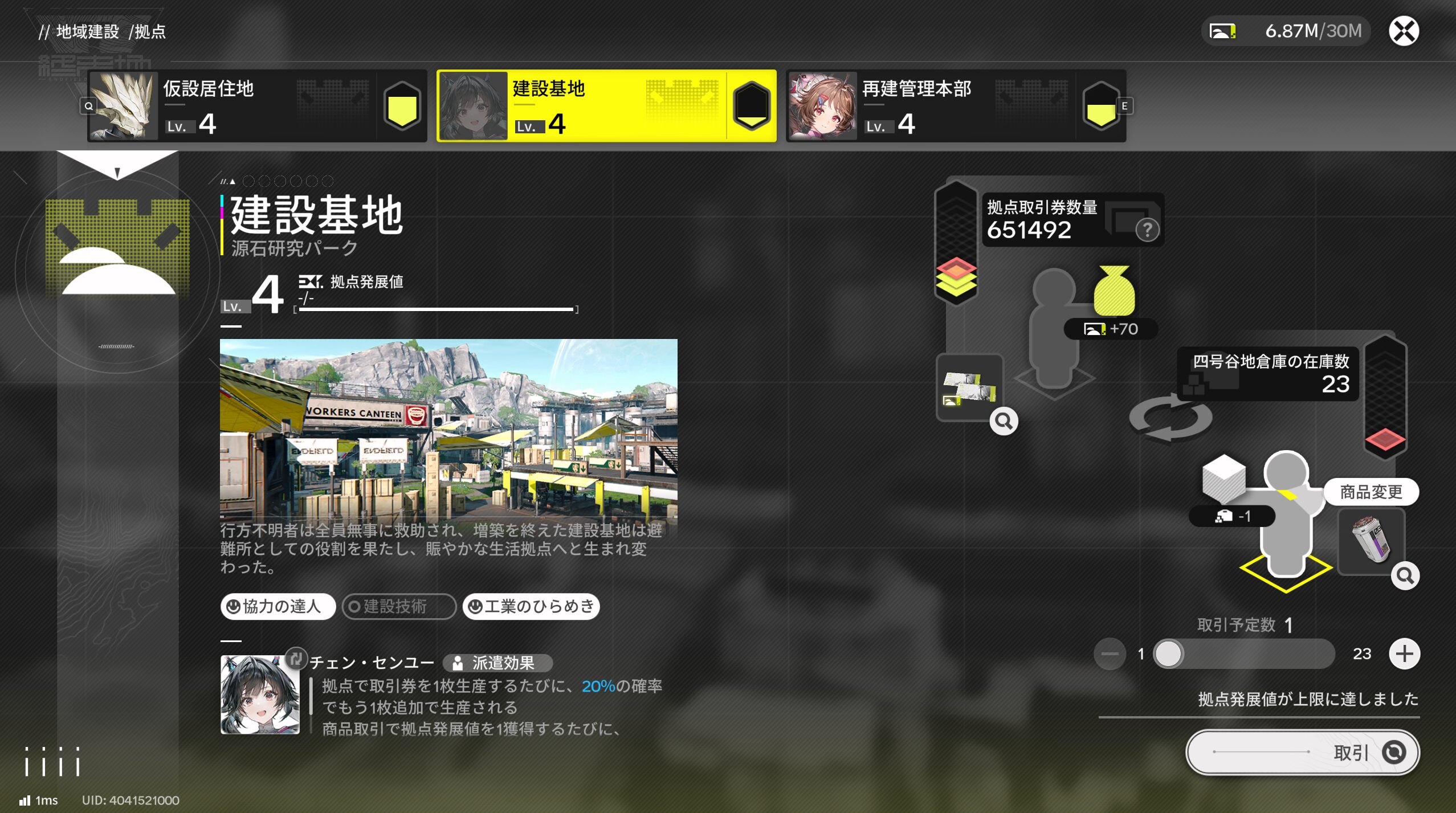 重要なのは『拠点での取引』『各設備のレベルアップ』ですね!