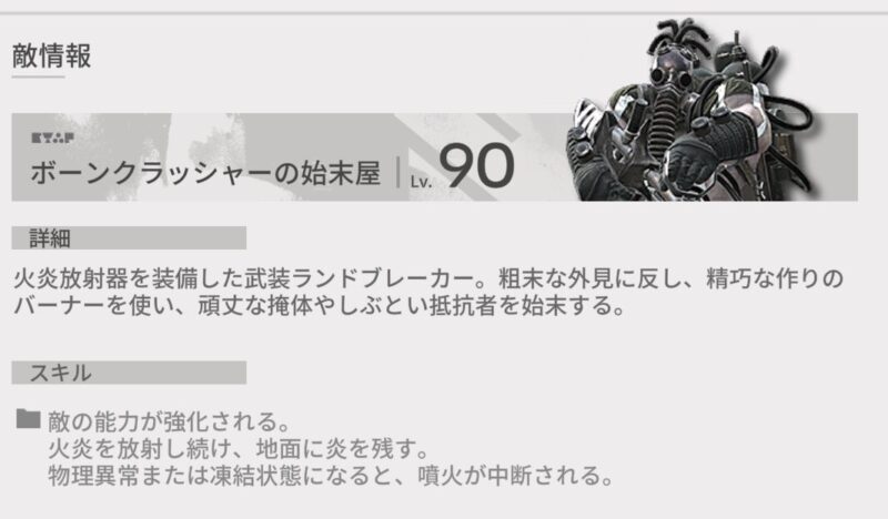 ボーンクラッシャーの始末屋は火炎放射をしてくるのが特徴です。