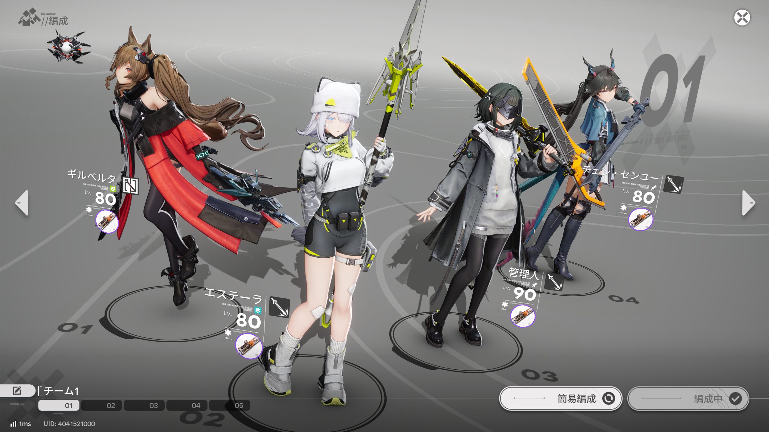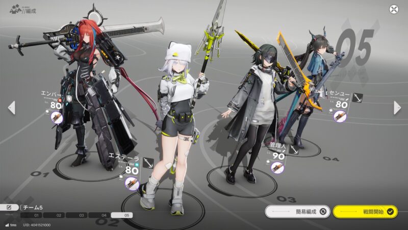 武器は☆5の代替武器で、装備は生物補助セットです。(アクセサリはHPアップとダメージ減少)