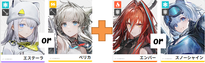烈火咆哮でのおすすめオペレーターは、エステーラorペリカ、エンバーorスノーシャインです。