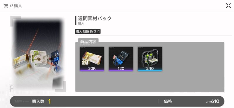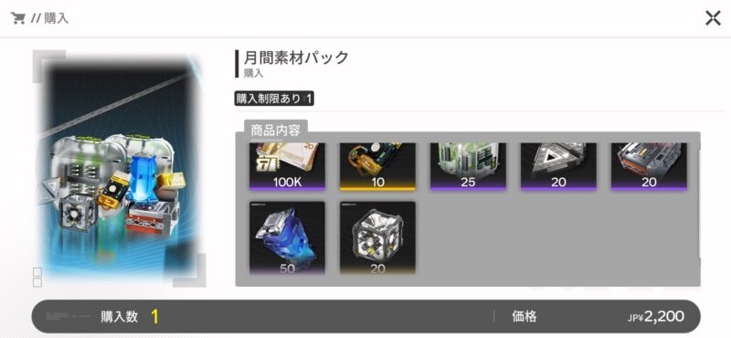 月間素材パックはさずがに量は増えますが、協約通行証と比べるとコスパでかなり見劣りしますね。