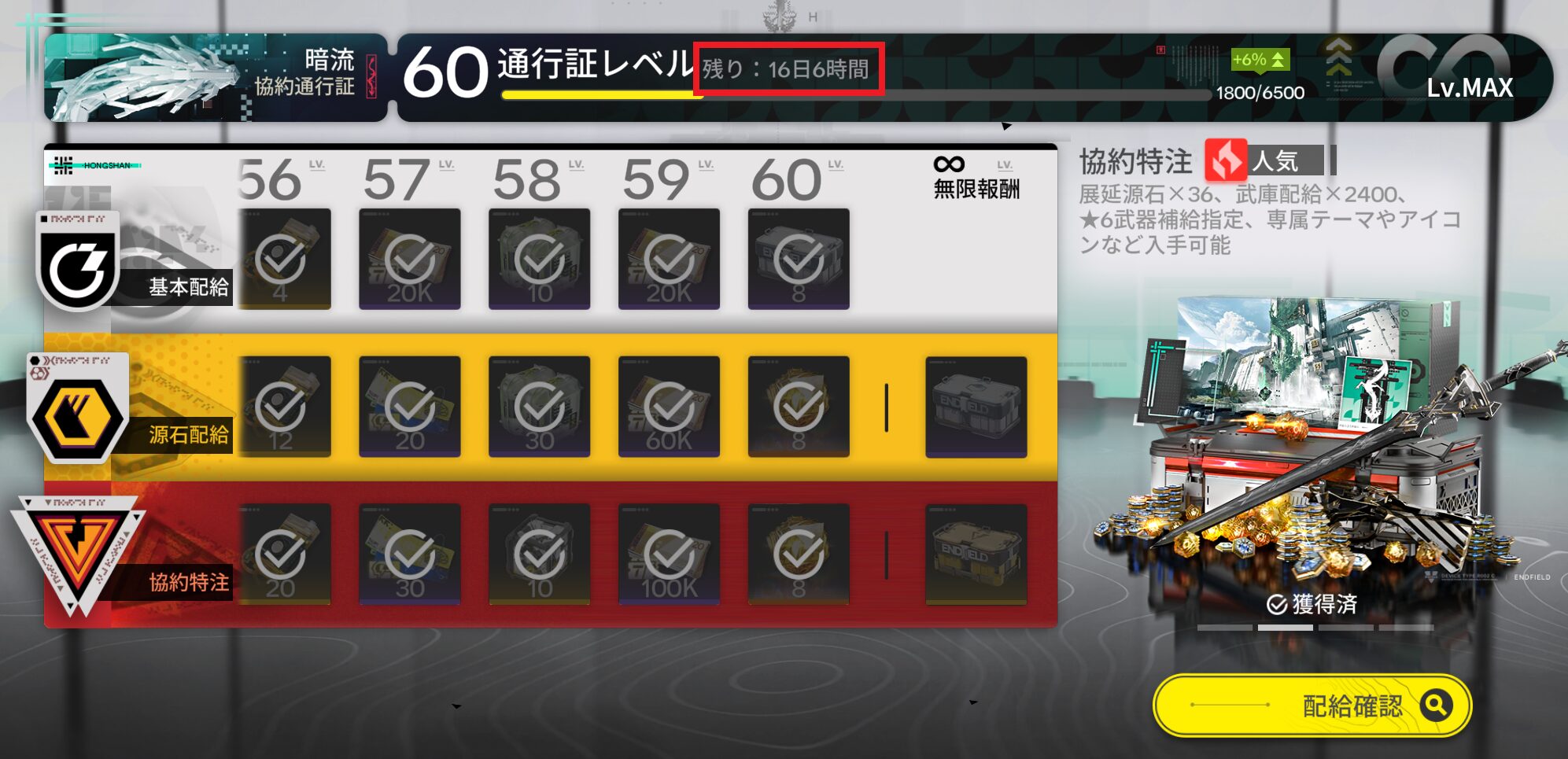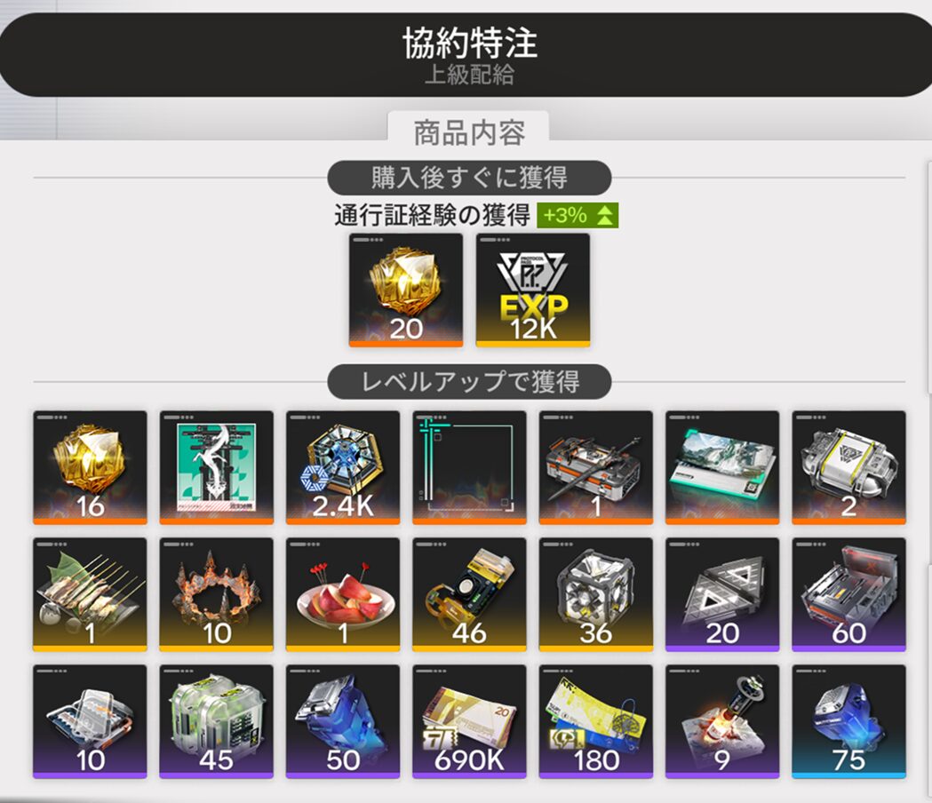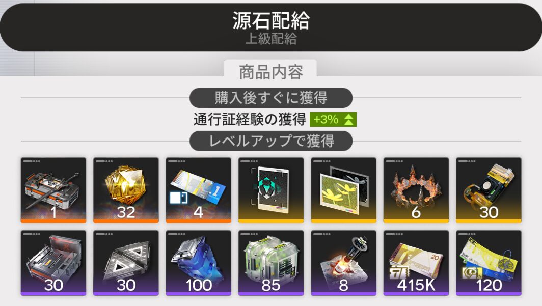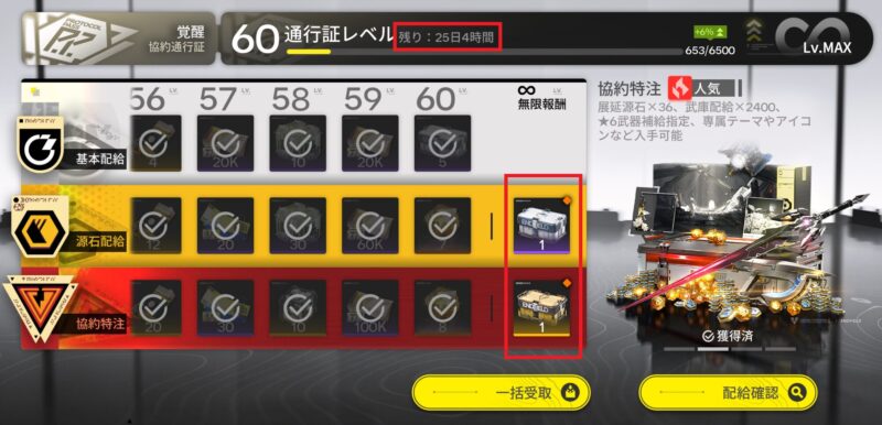 通行証レベルMAX後の『無限報酬』がうれしい