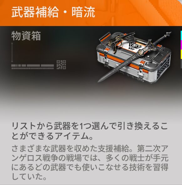 武器補給の箱から獲得できる武器は、ガチャ等では対象になっておらず獲得手段が限られます。