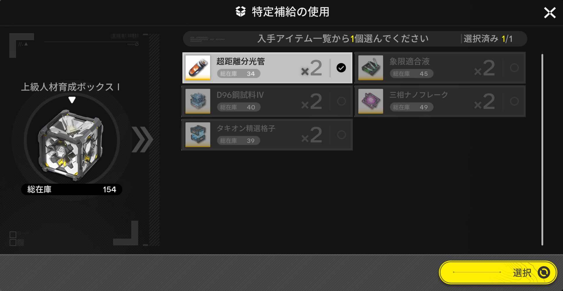 ここで欲しいアイテムを選んで、『選択』でOKです。