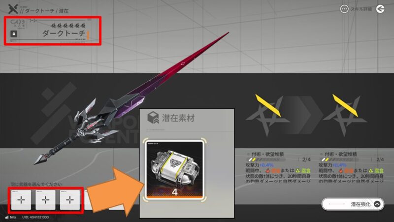 さらに潜在強化の画面を開きます。※今回は例としてダークトーチです。