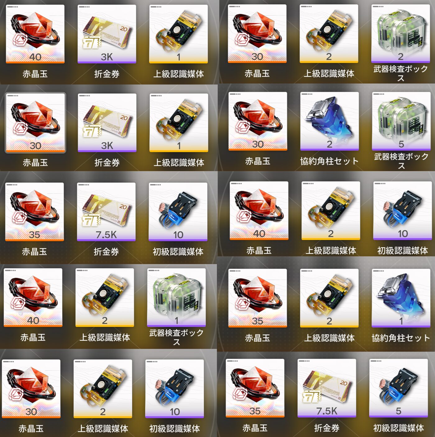 ・基本配給:無課金で無条件解放(アイテムは少なめ)