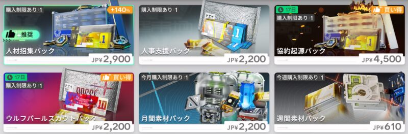 ゲーム内では多数のパックが販売されています。