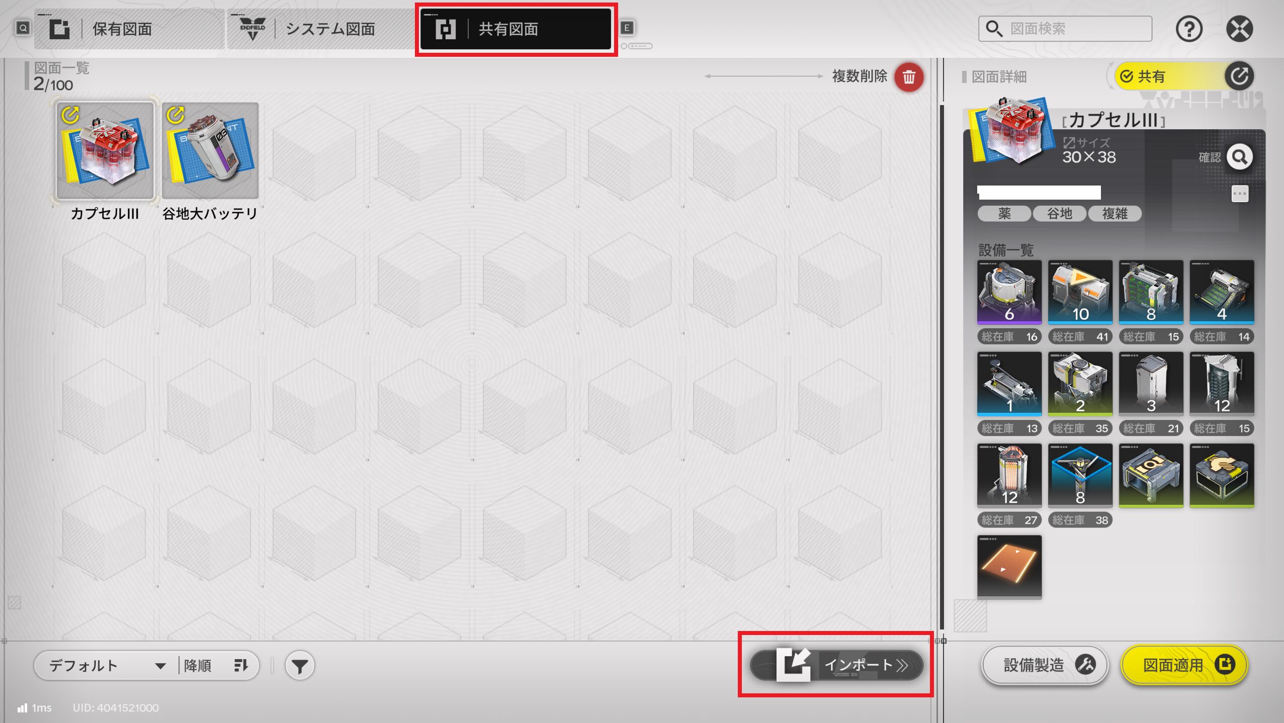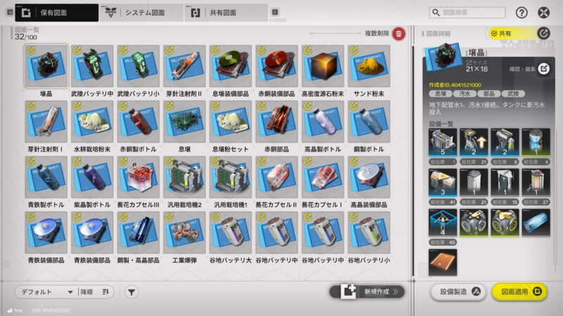 エンドフィールドの集成工業システムでは、他プレイヤーが作成した図面を利用できます。