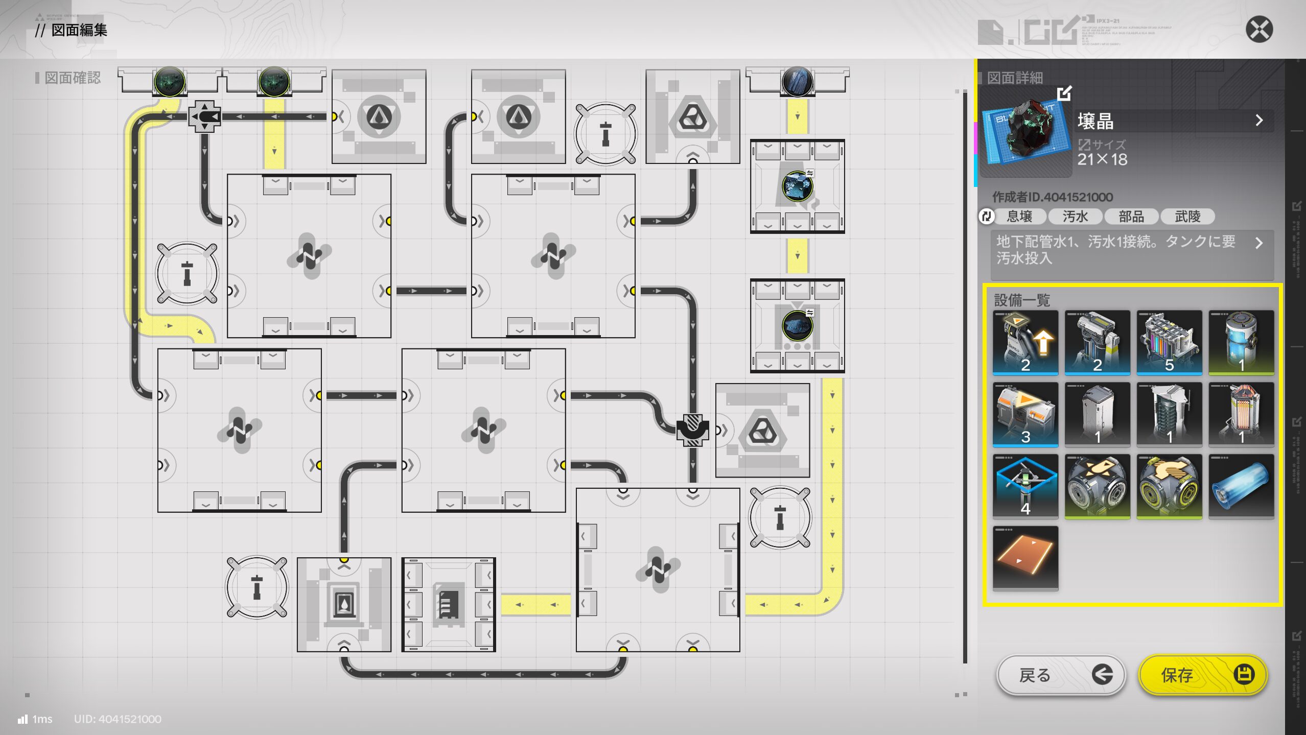 ※コピーするコードがない場合は、『図面共有コード(8×33):EFO018IeoI07U21IUI73』を練習で使ってみて下さい。(工業爆弾のコードです。)