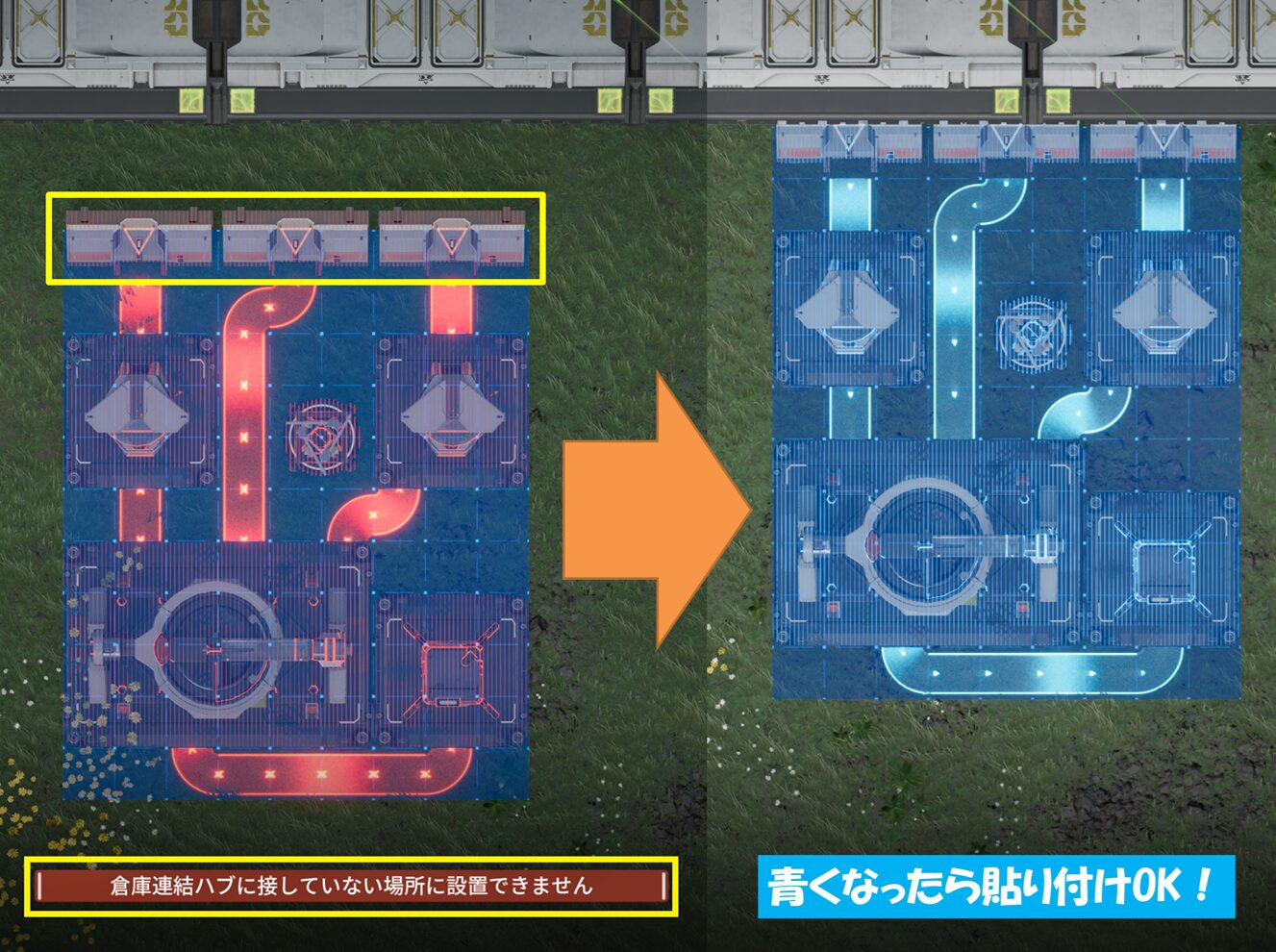 倉庫搬出口は、倉庫からアイテムを取り出せる便利設備ですが、倉庫連結ハブへの接続が必要です。