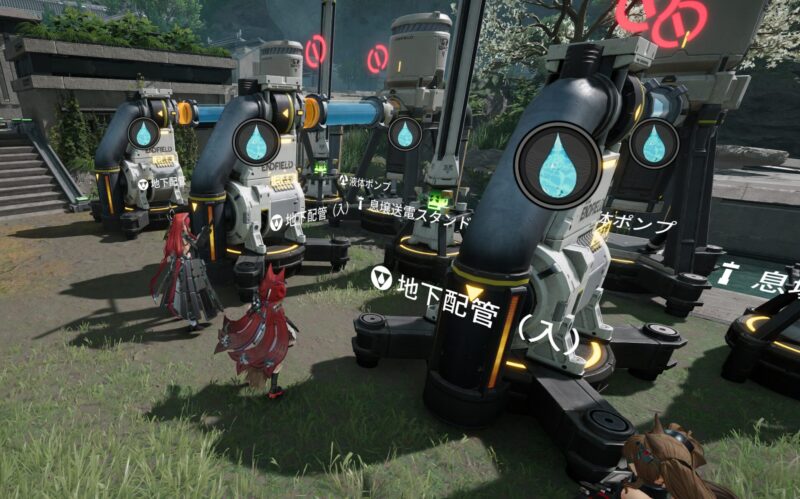 配管は、工業エリア外より液体ポンプで組み上げた水を図面内まで運ぶ必要があるため、別途準備が必要です。