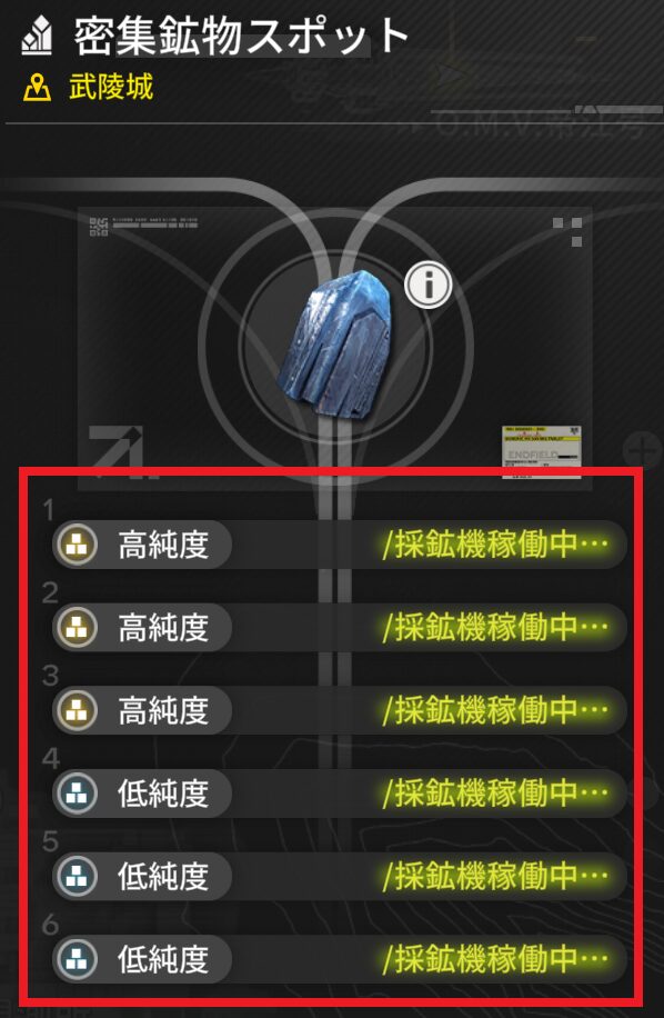 鉱物の採鉱ポイントでは『高純度』と『低純度』があります。