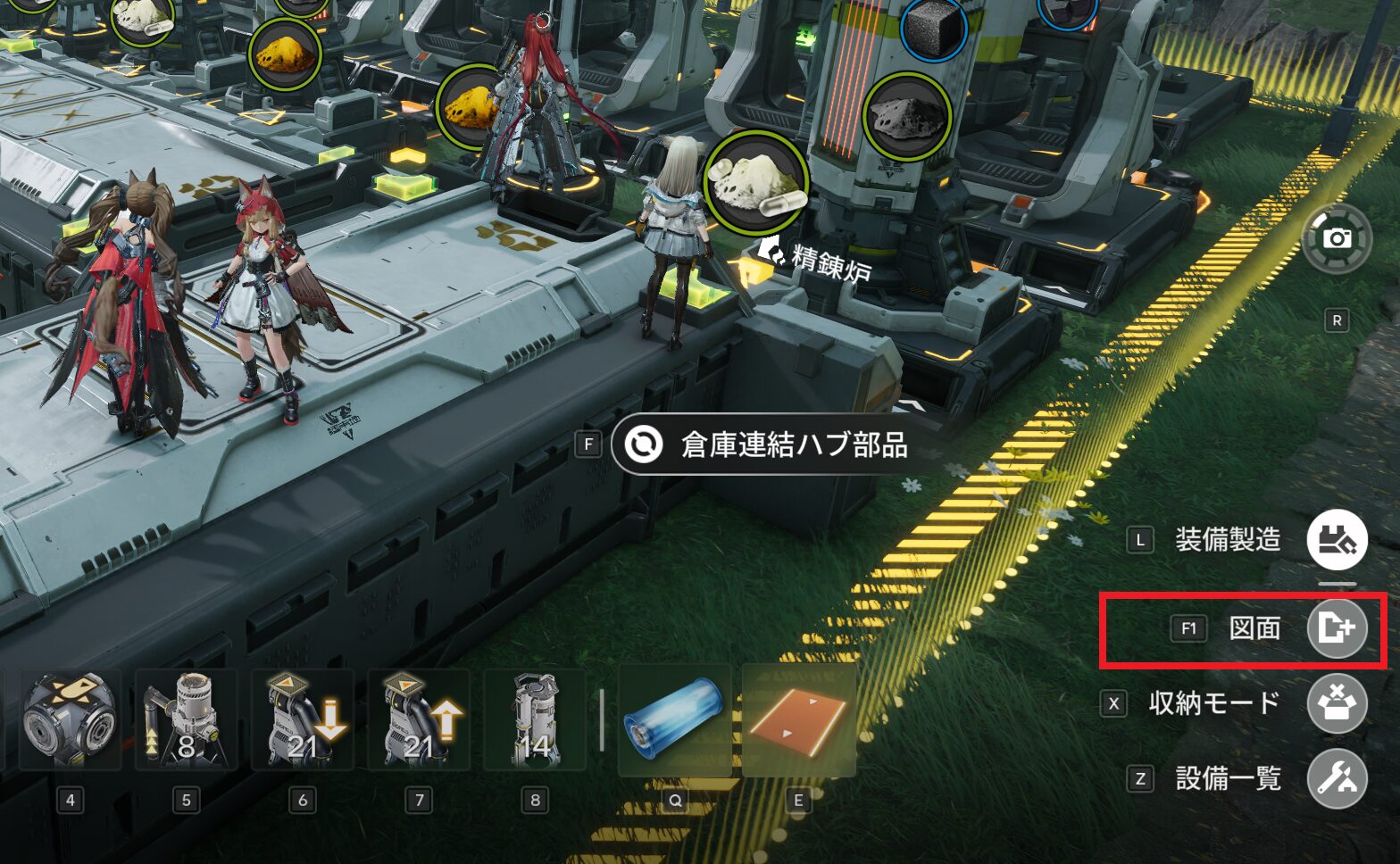 一覧には設備のアイコンに加え、必要個数も表示されます。