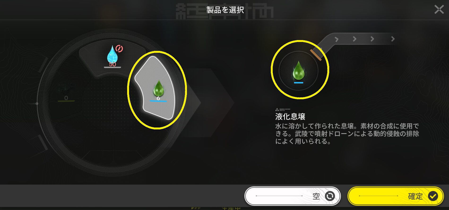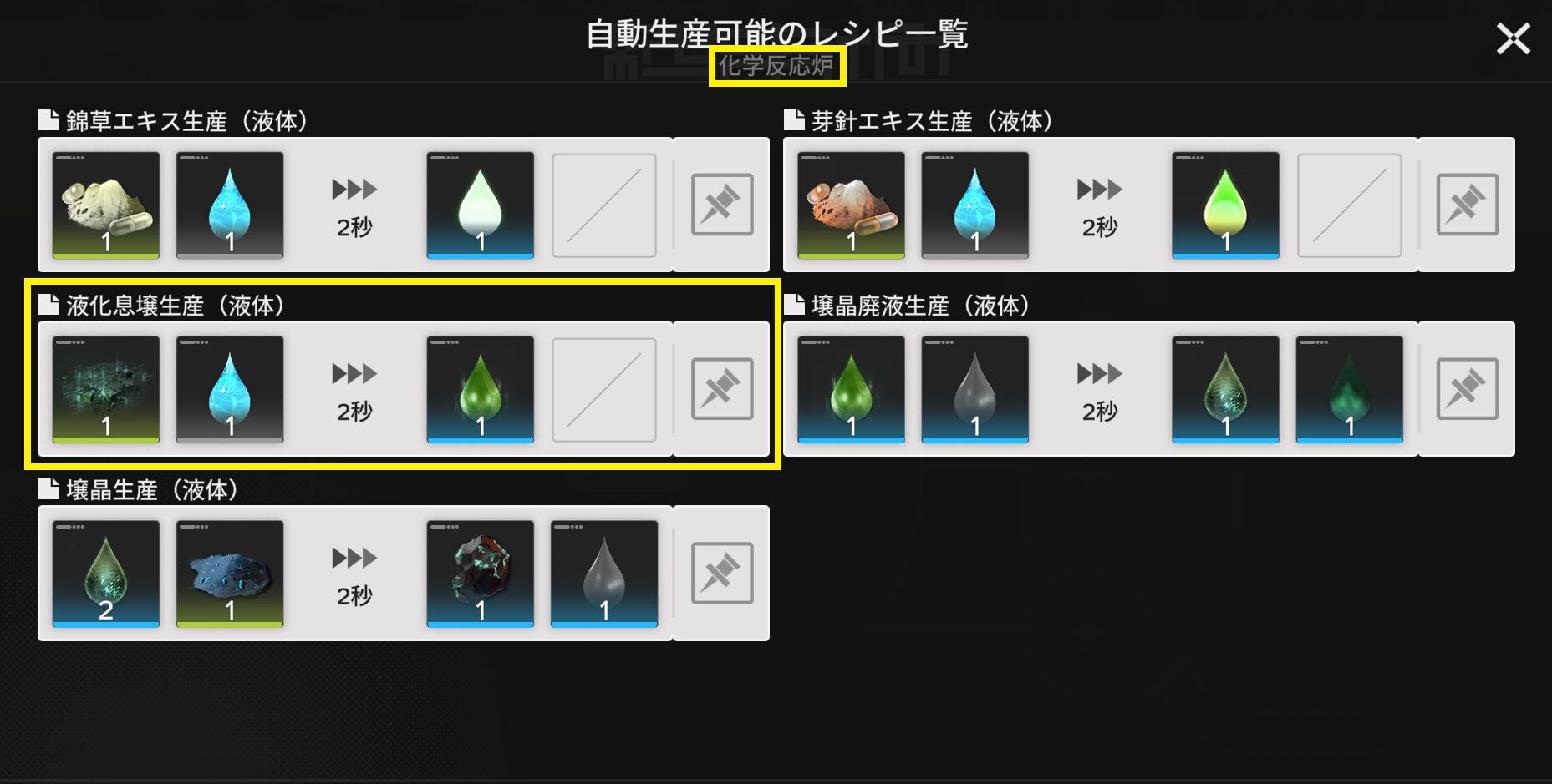 化学反応炉で作るのは『液化息壌』です。