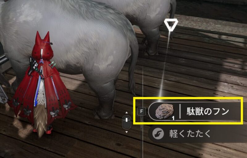 駄獣からフンを拾う方法ですが、いたってカンタンです。