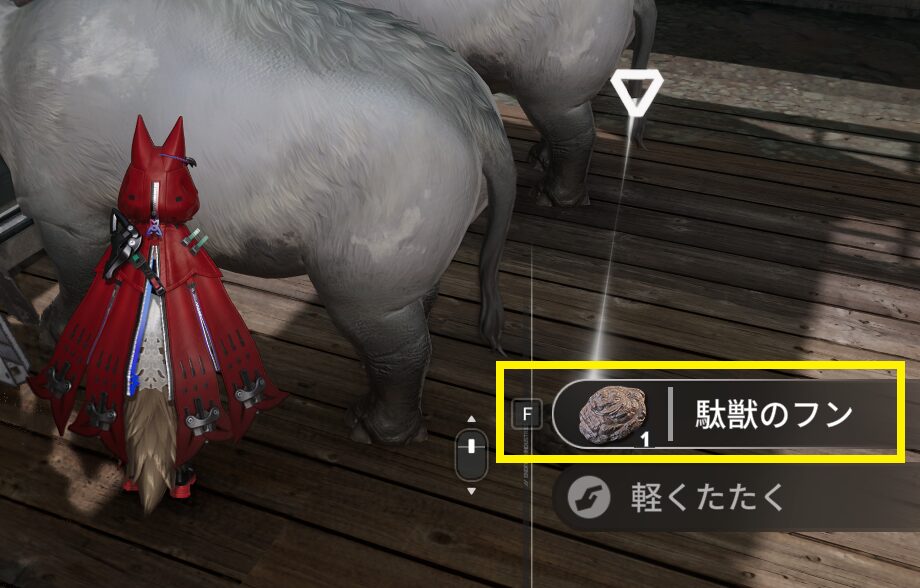 軽くたたいてから数秒後に、『駄獣のフン』が発生します。