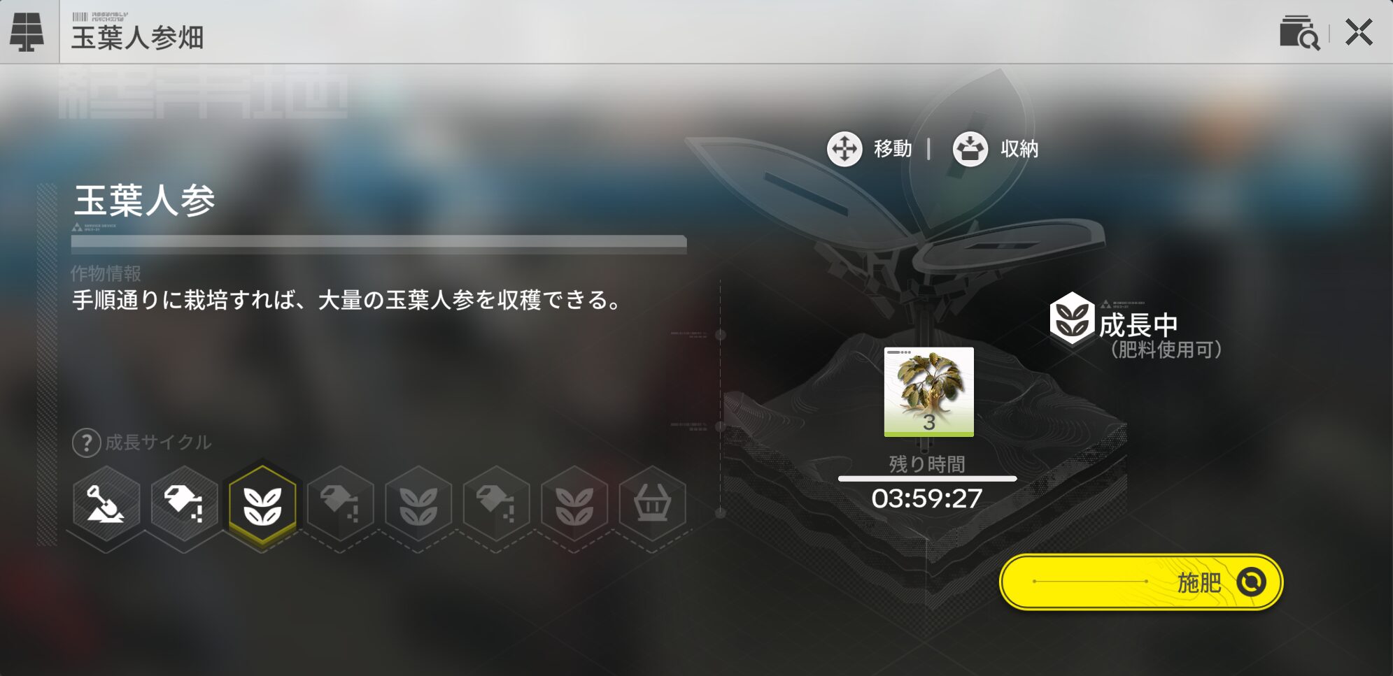 ※施肥をクリックすると使用する肥料の選択画面になります。
