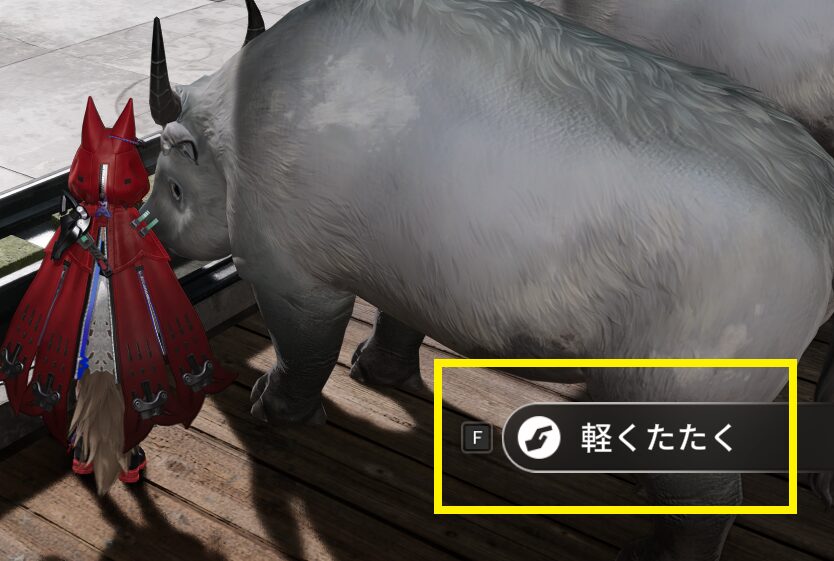駄獣の近くに来ると、自動的に『軽くたたく』の選択肢がでます。