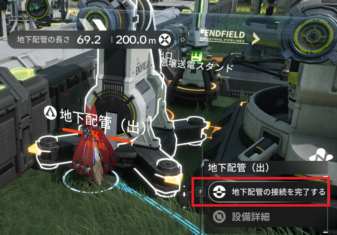 そして、図面内の地下配管(出)まで引っ張ってきた配管を地下配管(出)に接続を完了してください。