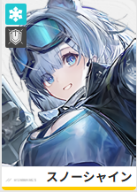 効果:スノーシャインはそのオペレーターに救援アシスタントを投げ、命中時に周囲のオペレーターを大きく回復させる。さらに一定時間、範囲内のオペレーターを継続的に治療する。