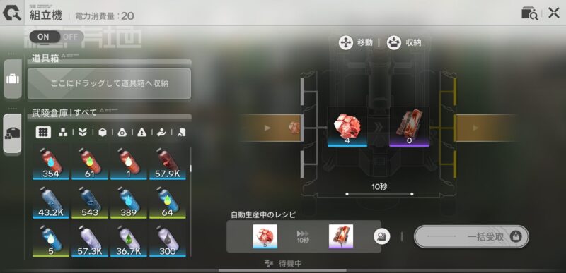 ※赤銅鉱物4レーンは、ゲーム内の数字では120/分ほど消費します。