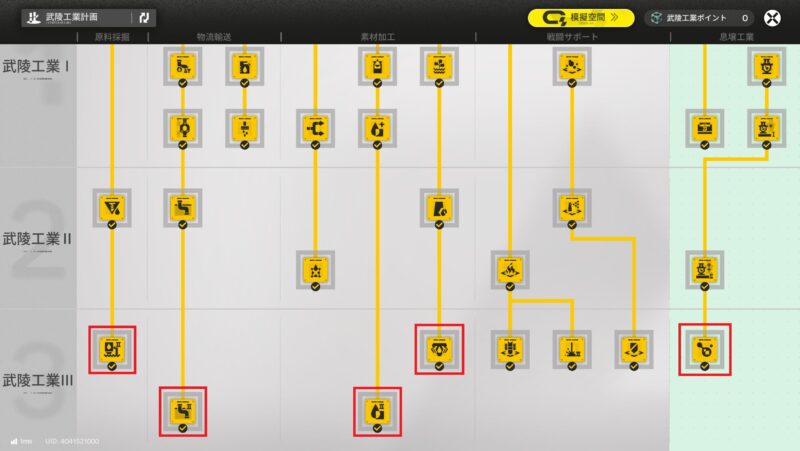 加えて、武陵工業Ⅲの戦闘サポート設備以外を優先的に解放しておきたいです。